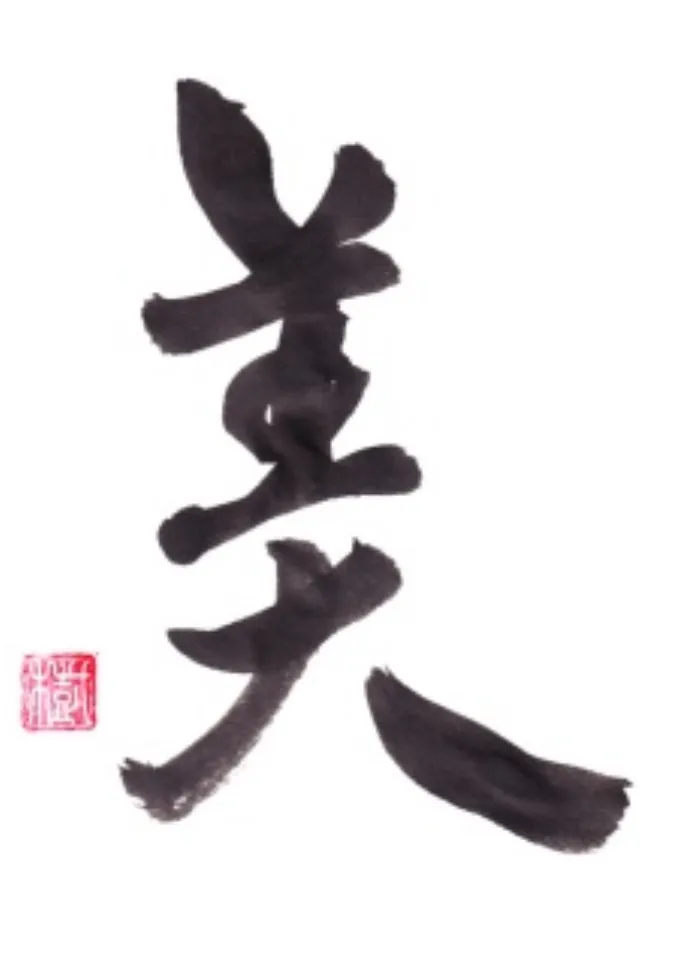 ・Yugen(幽玄)- mysterious, deep beauty beyond words in calligraphy, the character 美 show balance, elegance, and the gentle flow of the brush.